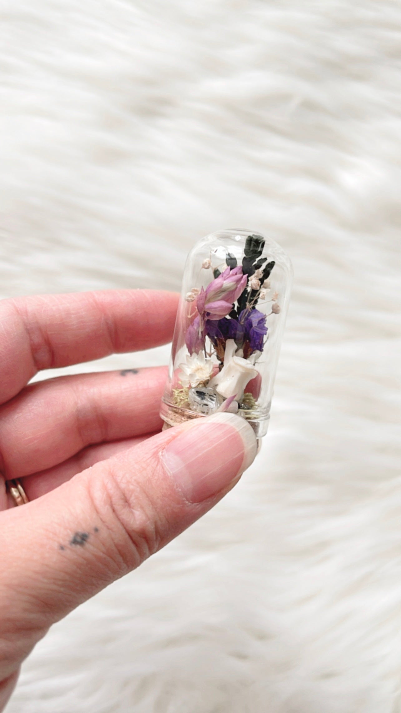 Mink Vertebrae, Reindeer Moss, Dried Flowers, Crystals