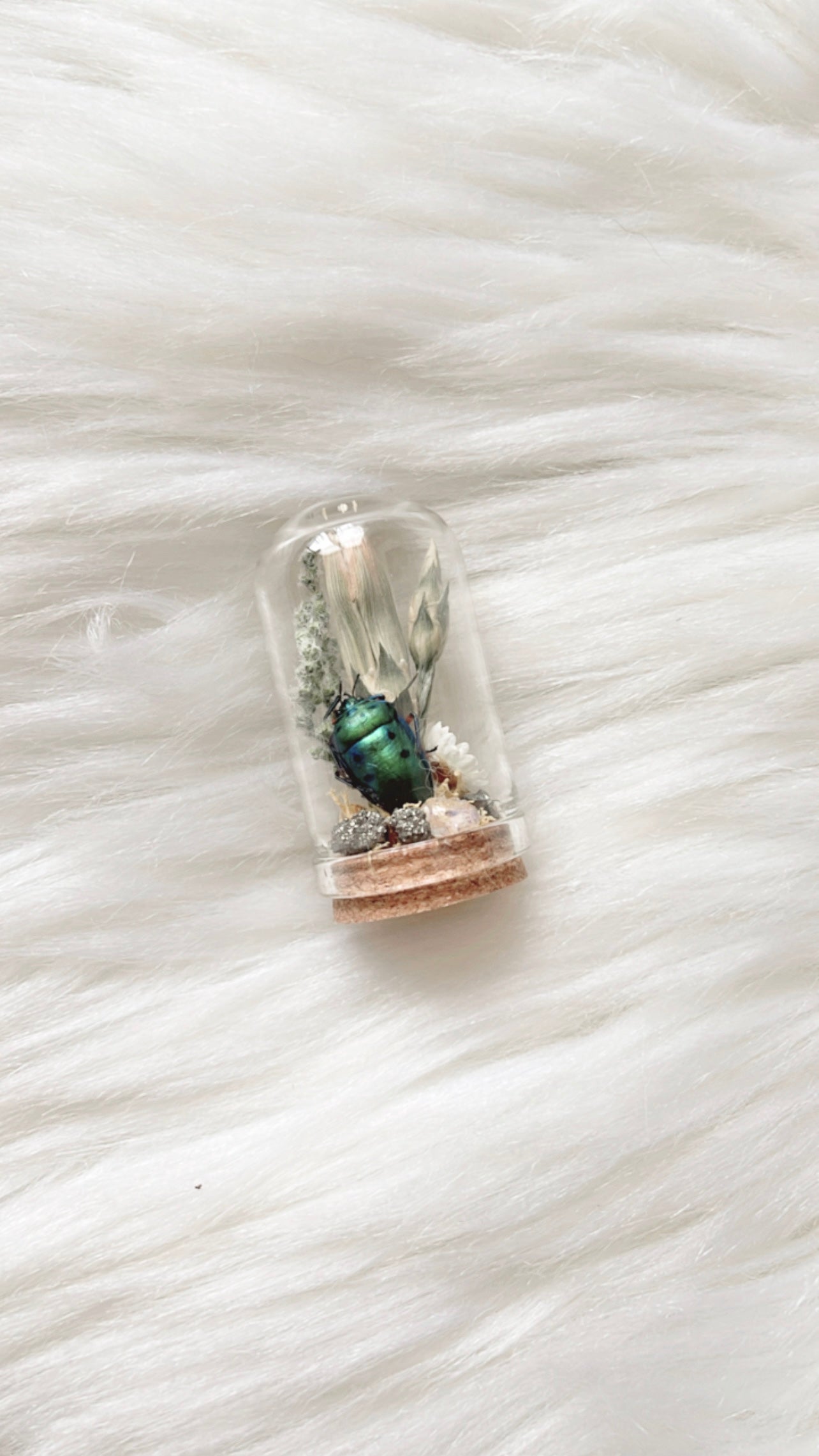 Colorful Shield Bug (Calliphara Nobilis), Reindeer Moss, Dried Flowers, Crystals